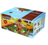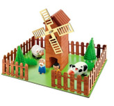 تولید کننده این محصول در ساخت آن اصلأ کم نگذاشته و هر یک از اجزا این محصول به نوبه خود جذاب و دوست داشتنی اند. داخل جعبه این محصول مصالح کافی برای احداث یک آسیابان دل انگیز وجود داره. آجرها روی یک پالت چوبی سبز رنگ قرار میگیرند و جالب اینجاست که جنس اونها واقعا از آجر هست! همچنین دور تا دور این پالت چوبی سبز رنگ که یک زمین چمن زیبا رو تداعی میکنه نرده های چوبی هم قرار میگیرند و شما رو یاد یک مزرعه دل انگیز میندازه. در کنار اون ها یه کیسه ملات هم وجود داره که در واقع پودر نشاسته ذرت هست و هیچ خطری نداره (حتی در صورت خورده شدن)، برای اینکه ملات رو آماده کنید یک استامبولی هم داخل جعبه هست. در نهایت هم برای چیدن آجر ها روی هم دیگه یک کمچه کوچک هم وجود داره که شبیه نمونه واقعی ساخته شده و دیدنش واقعا لذت بخشه. خب حالا که ملات و ابزار آماده است و آجر ها هم رسیده در نقش یک بنا در بیایید و یک خونه خوشگل بسازید! هر جا هم اشتباه شد یا اینکه اصلا بعد از ساخت خواستید اون رو خراب کنید کافیه ملات رو با آب بشورید و دوباره از اول یه مدل دیگه دیوار ها رو بسازید.