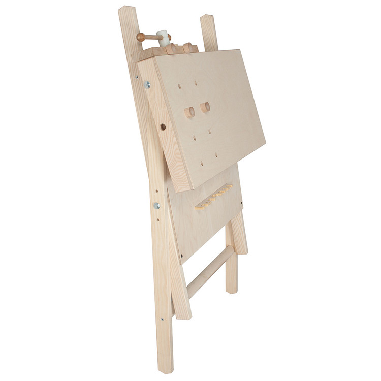 این میز از چوب طبیعی ساخته شده و قابلیت تنظیم ارتفاع متناسب با قد کودک شما را نیز دارد. ابعاد صفحه میز 30×55 سانتی متر بوده و ارتفاع آن حداکثر 74 سانتی متر می باشد. رویه میز قابلیت جدا شدن از پایه ها و اتصال به سایر میز ها ( به منظور حفاظت از میز در برابر صدمه های احتمالی در حین کار با ابزار کاردستی ) را دارد. این میز قابلیت جمع شدن در مواقع عدم نیاز را دارد.